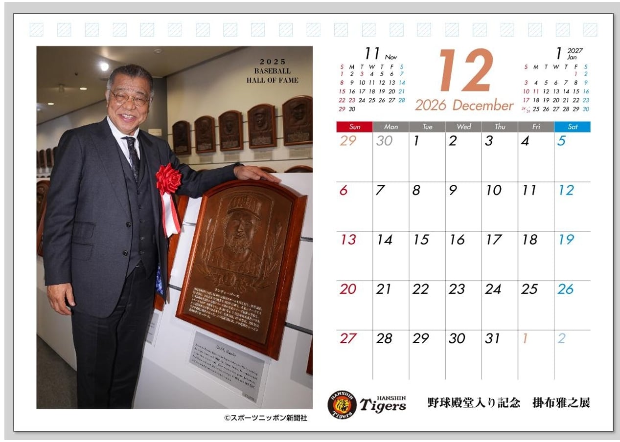 掛布雅之氏、野球殿堂入り記念で作られたB6卓上2026年カレンダーです