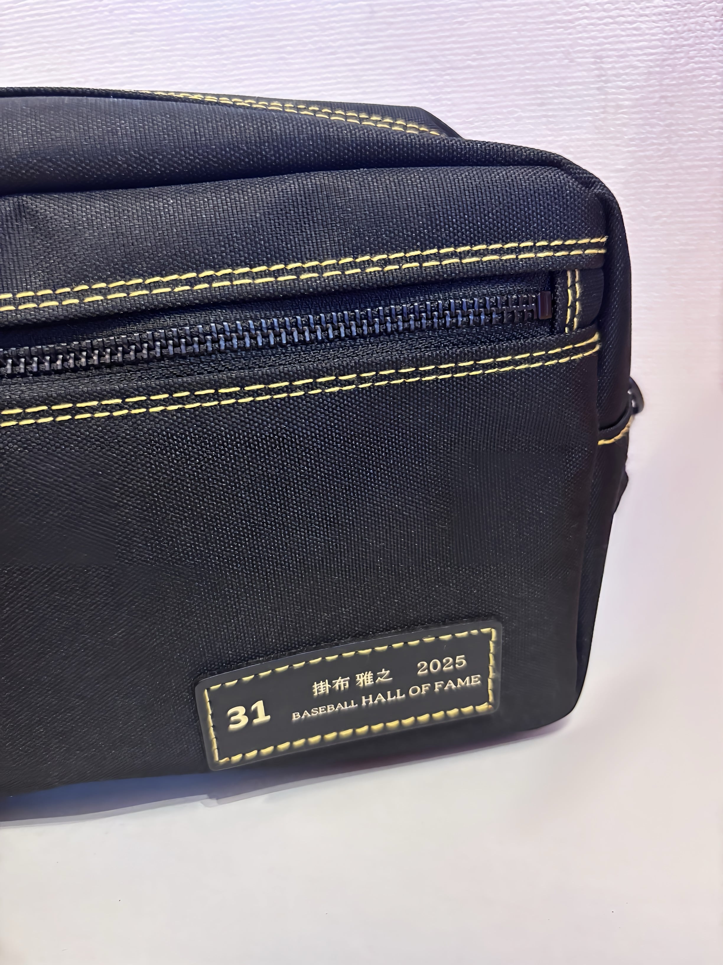 掛布雅之氏 野球殿堂入り記念のミニショルダーバッグ。掛布氏の特別なデザインが施されたこのミニショルダーバッグは、ファン必見のアイテムです。コレクションとしても最適です。